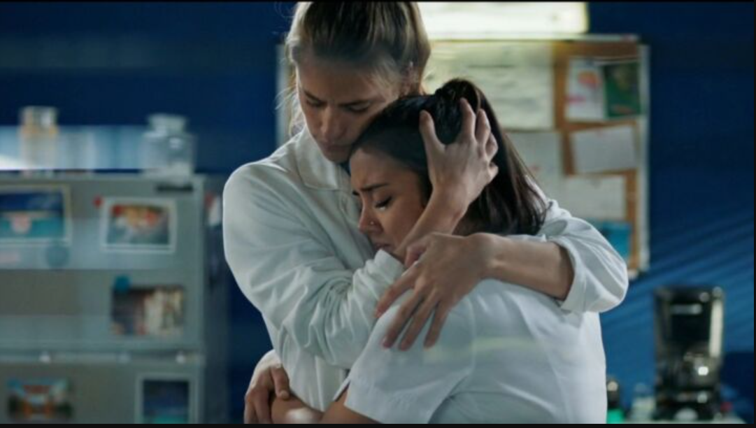 Alors qu’elle vient de prendre son service à l’hôpital, Noor apprend par Aaron qu’Océane est décédée dans la nuit d’un arrêt cardiaque. Noor, qui s’était liée d’amitié avec sa patiente, aurait souhaité être prévenue. Mais ce n’est pas le protocole. Sous le choc, elle se rend en salle de pause. Elle dit à Victoire qu’Océane est morte et éclate en sanglots. D’une voix douce et bienveillante, la médecin lui conseille de prendre soin d’elle et de prendre du temps, avant de la serrer dans ses bras.