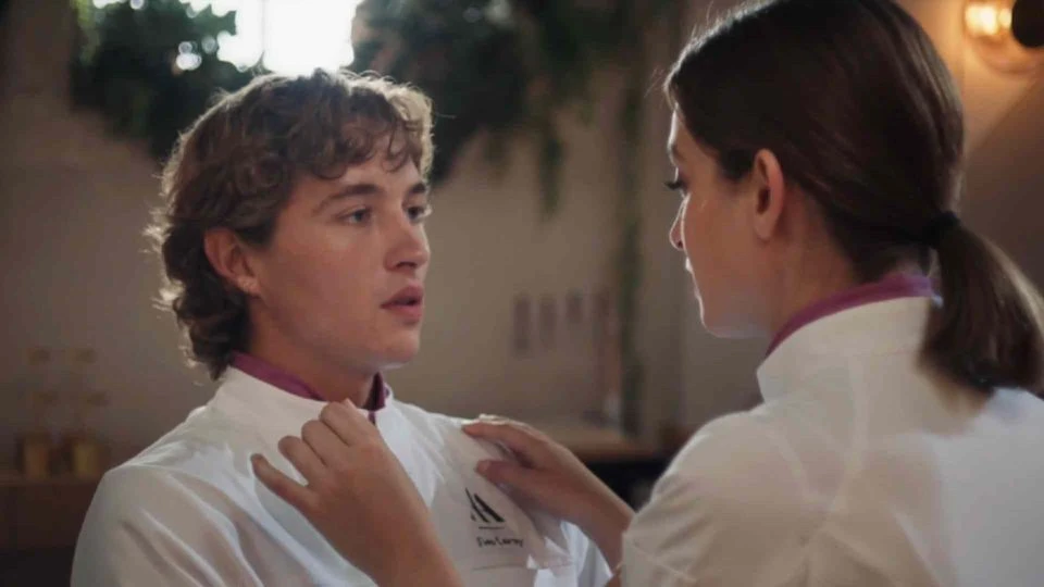 Ninon accepte tout ce que Milan propose et il s’en rend compte. Il la teste en proposant d’ajouter des ingrédients improbables dans leur plat. Elle dit oui. Il lui demande ce qui se passe même s’il est content qu’elle prenne en compte ses idées. Elle s’excuse de ne pas l’avoir écouté la veille. Il lui montre son nouveau couteau et il lui tend pour qu’elle l’essaye. Elle se recule terrifiée.